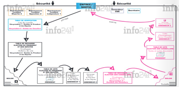 L’on sait depuis ce lundi, comment devrait se dérouler dans le détail le vote des électeurs pour la présidentielle/législative et locales du 26 août. Le CGE a rendu public le parcours des électeurs dans les bureaux de vote. Une opération en 14 étapes qui consacre le ticket électoral par parti, laissant peu de choix aux électeurs puisque bien qu’il y ait plusieurs bulletins « uniques », il faudra ne rendre qu’un seul bulletin dans l’urne pour la présidentielle/législative.